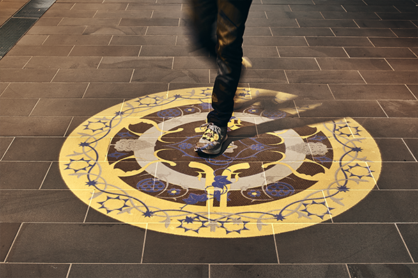 Five circular Gobo light projections on Gunpowder Walk trace the deadly history and evolution of gunpowder from its origins in China during the Song Dynasty, to its use in the Ottoman Empire and across Europe. From gunpowder use during the Song Dynasty, China (960-1279) culminating in American Civil War-era patent drawings for pistols and rifles (1861 – 1865). These projections highlight the transformative impact of gunpowder from the glory of the feudal Empire through to the rise of the American empire, which coincides with industrial scale munition manufacture.