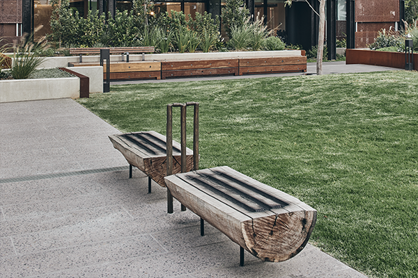 The Melbourne Cricket Club played some of its first games at the foot of Batman’s Hill, now Melbourne Place. To honor this significant moment in Melbourne and Australia’s sporting history, Lendlease commissioned a commemorative set of cricket stumps. Designed by Trent Jansen, the stumps are imagined as being crafted in a makeshift mold using local timber.